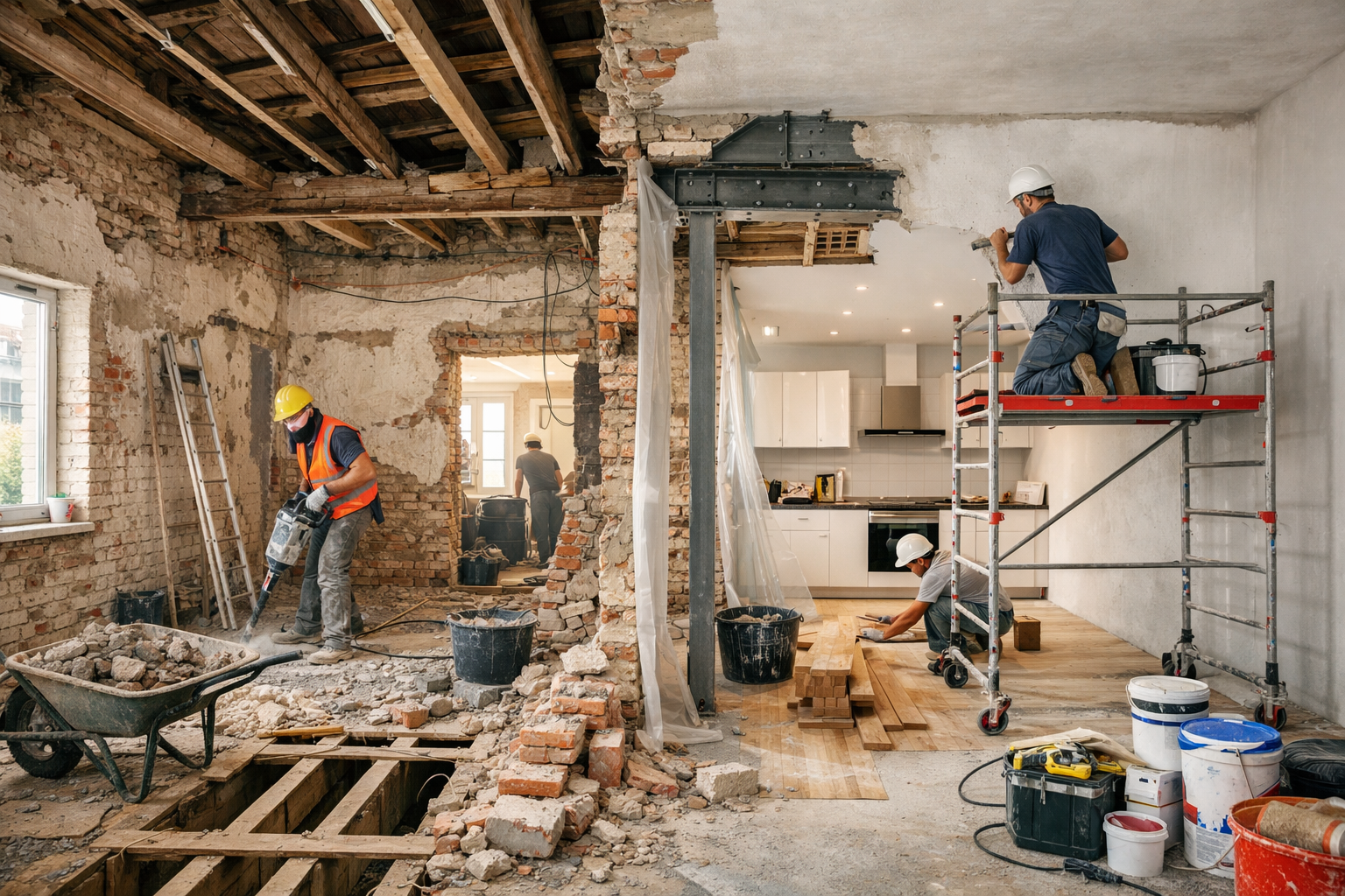 Umbau- und Sanierungsarbeiten erfordern Erfahrung, präzise Planung und eine saubere Umsetzung – insbesondere bei bestehenden, bewohnten oder genutzten Gebäuden. Wir bieten zuverlässige und fachgerechte Lösungen für Umbauten, Teilrückbauten und Sanierungen unterschiedlichster Objekte, stets in enger Zusammenarbeit mit erfahrenen Partnerfirmen.
