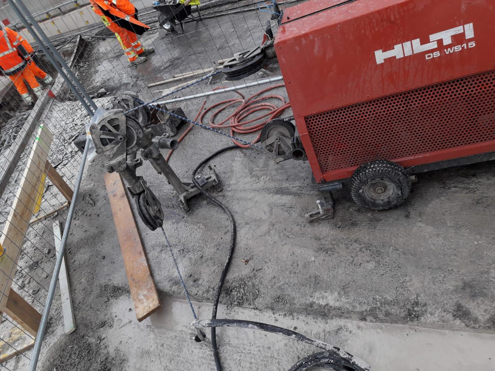 Die Seilsägetechnik arbeitet erschütterungs- und staubfrei durch den Einsatz von wassergekühlten Systemen. Die Antriebseinheit muss nicht unmittelbar neben dem Bauteil stehen, wodurch wir auch schwer zugängliche Bereiche problemlos erreichen.